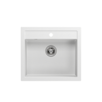 Quadron | BILL 110 | kuchenny zlewozmywak granitowy BIAŁY + STAL | wymiary: 60 x 54 x 20,5 cm | 1-komorowy wpuszczany/podwieszany | podbudowa szafki: od 60 cm