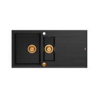 EVAN 111 GraniteQ zlewozmywak z syfonem Push 2 Open 1-komorowy z/o (860x500x210) black diamond / elementy złote