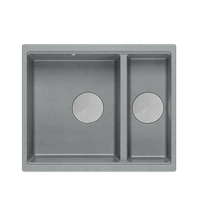 Quadron | KURT 110 | kuchenny zlewozmywak granitowy SZARY | wymiary: 59,5 x 50 x 21,5 cm | akcesoria: syfon, dozownik, deska, Qmata, wkładka ociekowa | 1-komorowy wpuszczany | podbudowa szafki: od 60 cm
