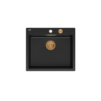 MORGAN 111 GraniteQ zlewozmywak pure carbon z syfonem Push To Open 1-komorowy z/o / elementy złote