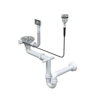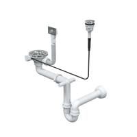 Odpływ PUSH TO OPEN 3 1/2" z syfonem 1-komorowy stal szlachetna (STAL-pionowy) save space, przycisk okrągły stal szczotkowana