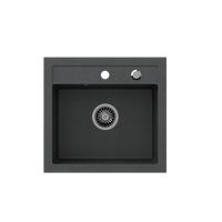 JOHNNY 110 GraniteQ zlewozmywak granitowy black dotted (czarny) 1-komorowy b/o (50x47x18,5), z syfonem i zaślepką stal szlachetna