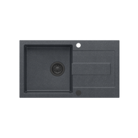 PETER 156 GraniteQ zlewozmywak granitowy pure carbon 1,5-komorowy z/o (78x50x20) z syfonem pure carbon i zaślepką kol. czarny