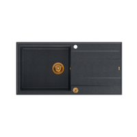 EVAN 111 GraniteQ zlewozmywak z syfonem Push 2 Open 1-komorowy z/o (860x500x210) pure carbon / elementy złote