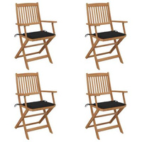 vidaXL Składane krzesła ogrodowe z poduszkami, 4 szt., drewno akacjowe