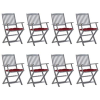 vidaXL Składane krzesła ogrodowe z poduszkami, 8 szt., drewno akacjowe