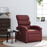 vidaXL Rozkładany fotel masujący, winna czerwień, obity sztuczną skórą