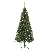 vidaXL Sztuczna choinka z lampkami i bombkami, zielona, 210 cm