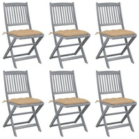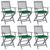vidaXL Składane krzesła ogrodowe, 6 szt., z poduszkami, akacjowe