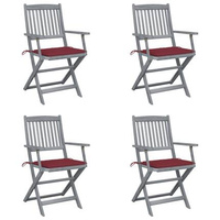 vidaXL Składane krzesła ogrodowe z poduszkami, 4 szt., drewno akacjowe
