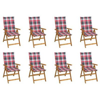 vidaXL Składane krzesła ogrodowe z poduszkami, 8 szt., drewno akacjowe