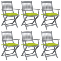vidaXL Składane krzesła ogrodowe, 6 szt., z poduszkami, akacjowe