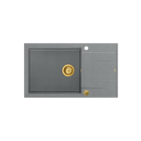 Zlewozmywak granitowy MARC 1-komorowy 76x50 cm szary/silver stone + Nano ZŁOTO PVD