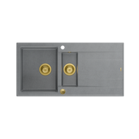 EVAN 156 GraniteQ zlewozmywak z syfonem Push To Open 1,5-komorowy z/o (1000x500x210; kom. 420x480) silver stone / elementy złote