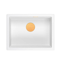 LOGAN 100 GraniteQ zlewozmywak snow white 59,5x45,1x21,5 cm 1-komorowy podwieszany z syfonem manualnym złoty
