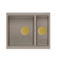 ( ilość produktów: 482 )QUADRON | LOGAN 150 | granitowy zlewozmywak kuchenny BEŻ + ZŁOTO PVD | wymiary: 56 x 46 x 22 cm | 1,5-komorowy wpuszczany | podbudowa szafki od: 60 cm