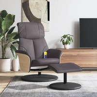 vidaXL Rozkładany fotel masujący z podnóżkiem, szary, sztuczna skóra