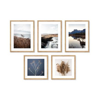 Zestaw obrazów w ramie z dekorem drewna 2x 30x30 i 3x 30x40