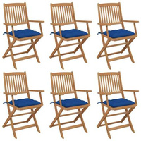 vidaXL Składane krzesła ogrodowe, 6 szt., z poduszkami, akacjowe