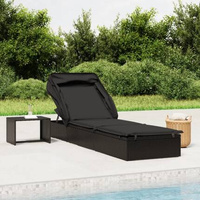 vidaXL Leżak ze składanym dachem, czarny, 213x63x97 cm, polirattan