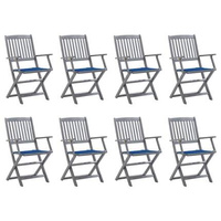 vidaXL Składane krzesła ogrodowe z poduszkami, 8 szt., drewno akacjowe