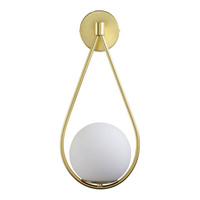Kinkiet ścienny CORDEL w stylu vintage – złoty mosiądzowany ring z bursztynowym kloszem kulką - elegancka lampa ścienna G9 LED