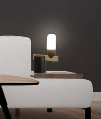 Lampka stołowa NAGOJA w stylu Japandi - biało-beżowy klosz z tworzywa i drewna - lampka na stolik nocny E27