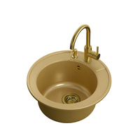 ART MORGAN 210 (Ø51x20) GraniteQ Art Gold z syfonem manualnym, baterią Naomi i dozownikiem - złoty