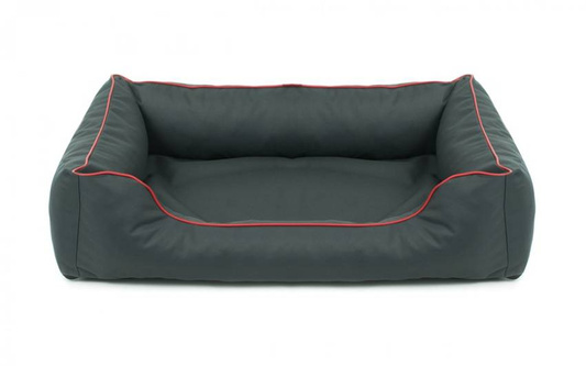 Legowisko dla psa Sofa Valencia Standard w kolorze ciemnoszarym z czerwonym wykończeniem Rozmiar: S - 65 x 50 cm