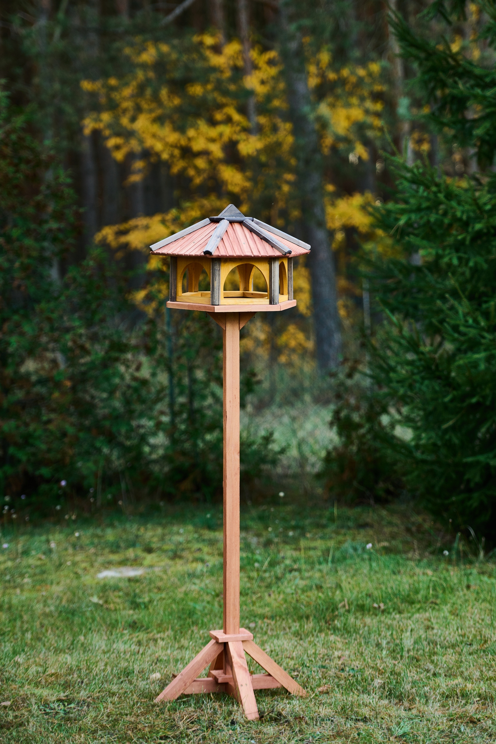 Karmnik przystosowany jest do stojaka o wysokości 130 cm (po lewej) lub 120 cm (po prawej) sprzedawanego w komplecie na innej aukcji lub po kliknięciu "kup w zestawie" na górze strony.
