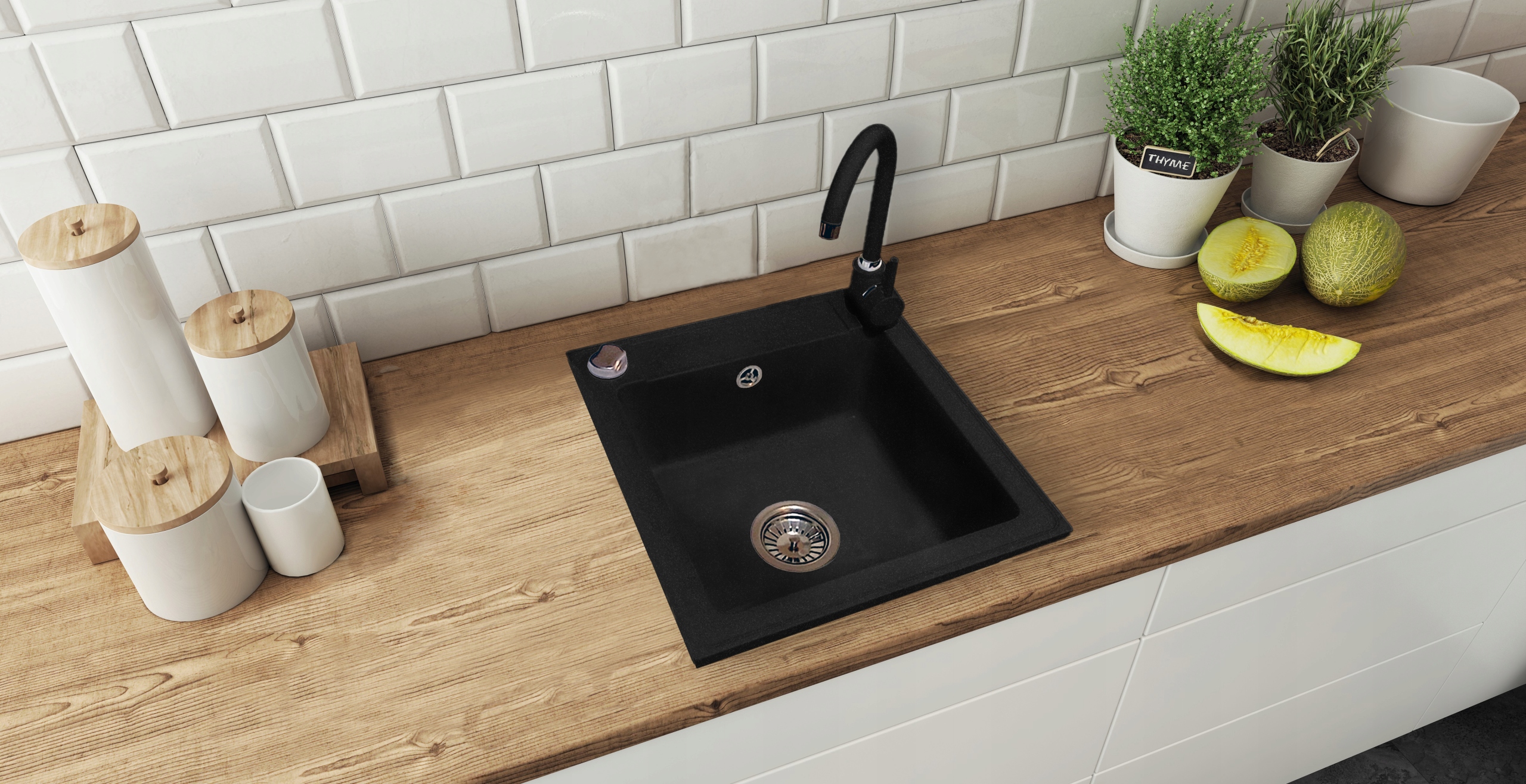 - Skład zlewozmywaków to 20% dedykowanej żywicy oraz 80% kruszywa granitowego