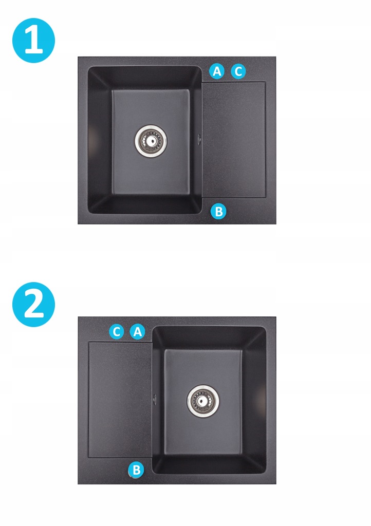 - Otwory w zlewozmywaku: 2 otwory w standardzie (góra i dół) Jeśli życzą sobie Państwo mniej lub więcej otworów, bardzo proszę o taką informację w wiadomości do sprzedającego, używając literek na zdjęciu poniżej oraz o informację, po której stronie ma się znajdować ociekacz