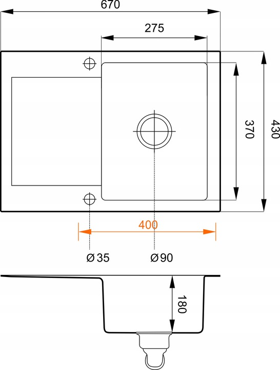 Uwaga: w przypadku braku informacji o otworach wysyłamy zlewozmywak z dwoma otworami w standardzie!