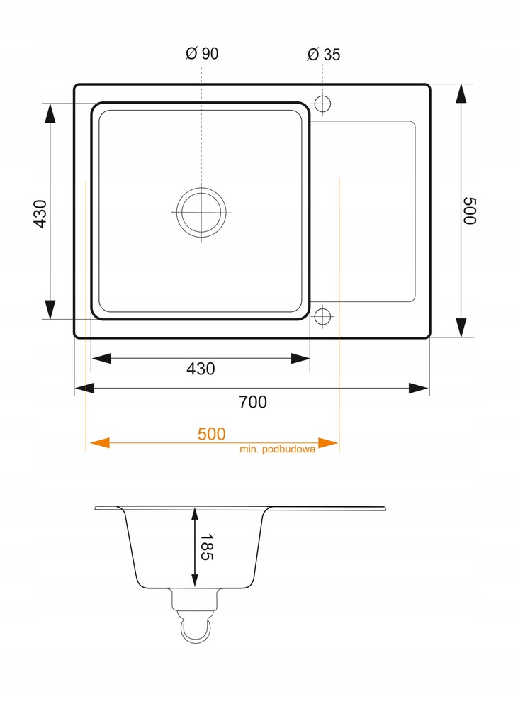 ✅W zestawie: zaczepy montażowe, szablon wycięcia otworu pod montaż zlewozmywaka
