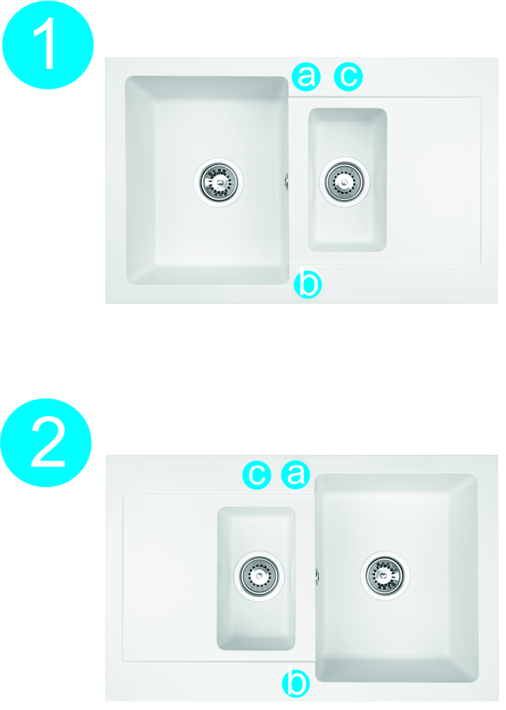 - Otwory w zlewozmywaku: 2 otwory w standardzie (góra i dół) Jeśli życzą sobie Państwo mniej lub więcej otworów, bardzo proszę o taką informację w wiadomości do sprzedającego, używając literek na zdjęciu poniżej oraz o informację, po której stronie ma się znajdować ociekacz