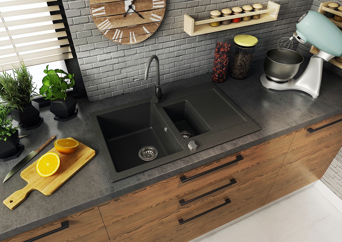 - Skład zlewozmywaków to 20% dedykowanej żywicy oraz 80% kruszywa granitowego