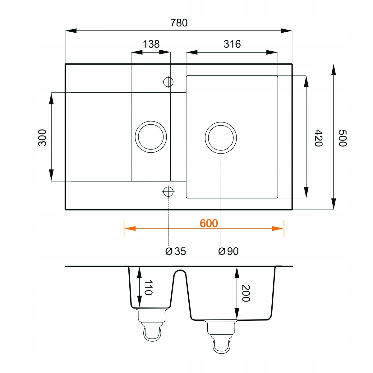 - Dodatkowo w zestawie: karta gwarancyjna, szablon wycięcia otworu pod montaż zlewozmywaka