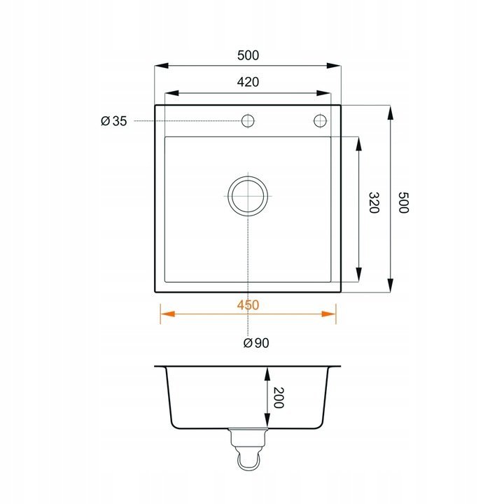 - Dodatkowo w zestawie: karta gwarancyjna, szablon wycięcia otworu pod montaż zlewozmywaka