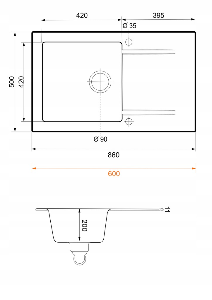 Uwaga: w przypadku braku informacji o otworach wysyłamy zlewozmywak z dwoma otworami w standardzie!