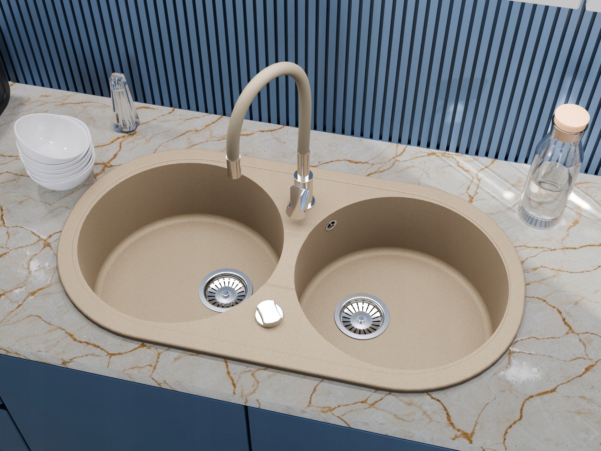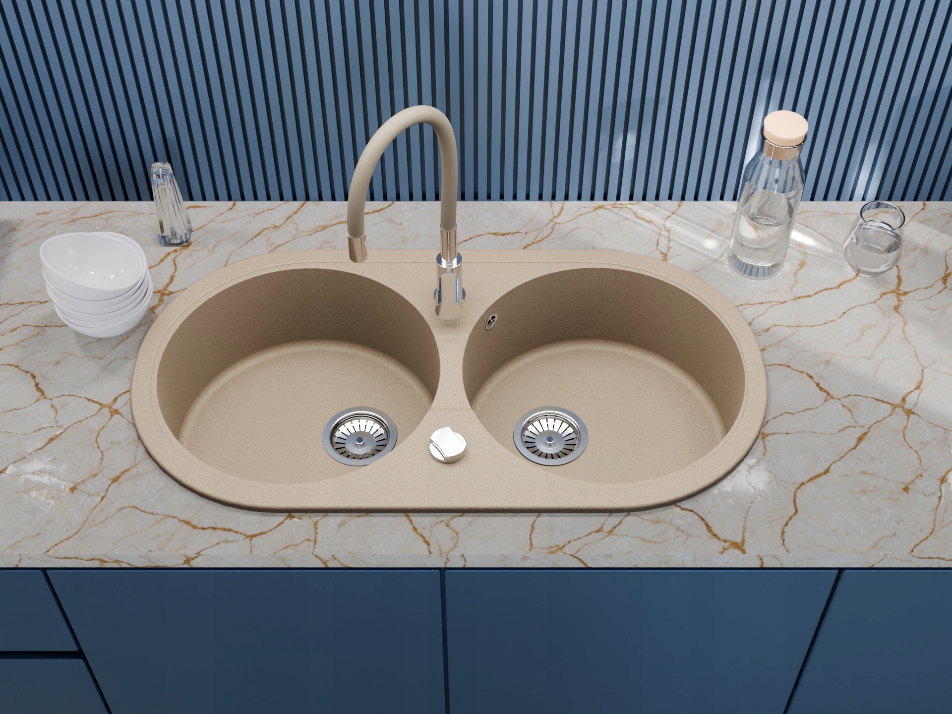 - Skład zlewozmywaków to 20% dedykowanej żywicy oraz 80% kruszywa granitowego
