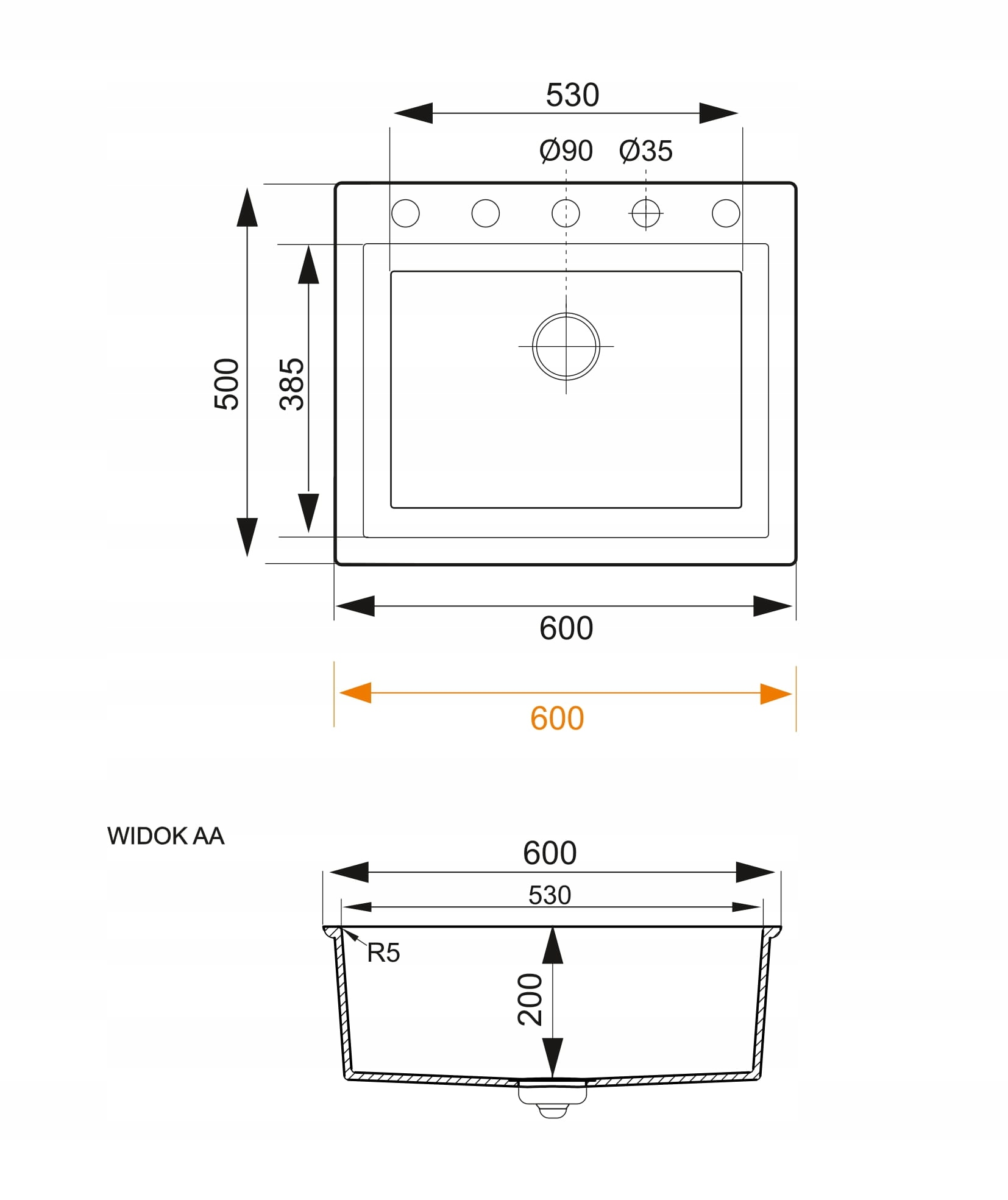 - Otwory w zlewozmywaku: Brak. Jeśli życzą sobie Państwo mniej lub więcej otworów, bardzo proszę o taką informację w uwagach do sprzedającego, podczas składania zamówienia.