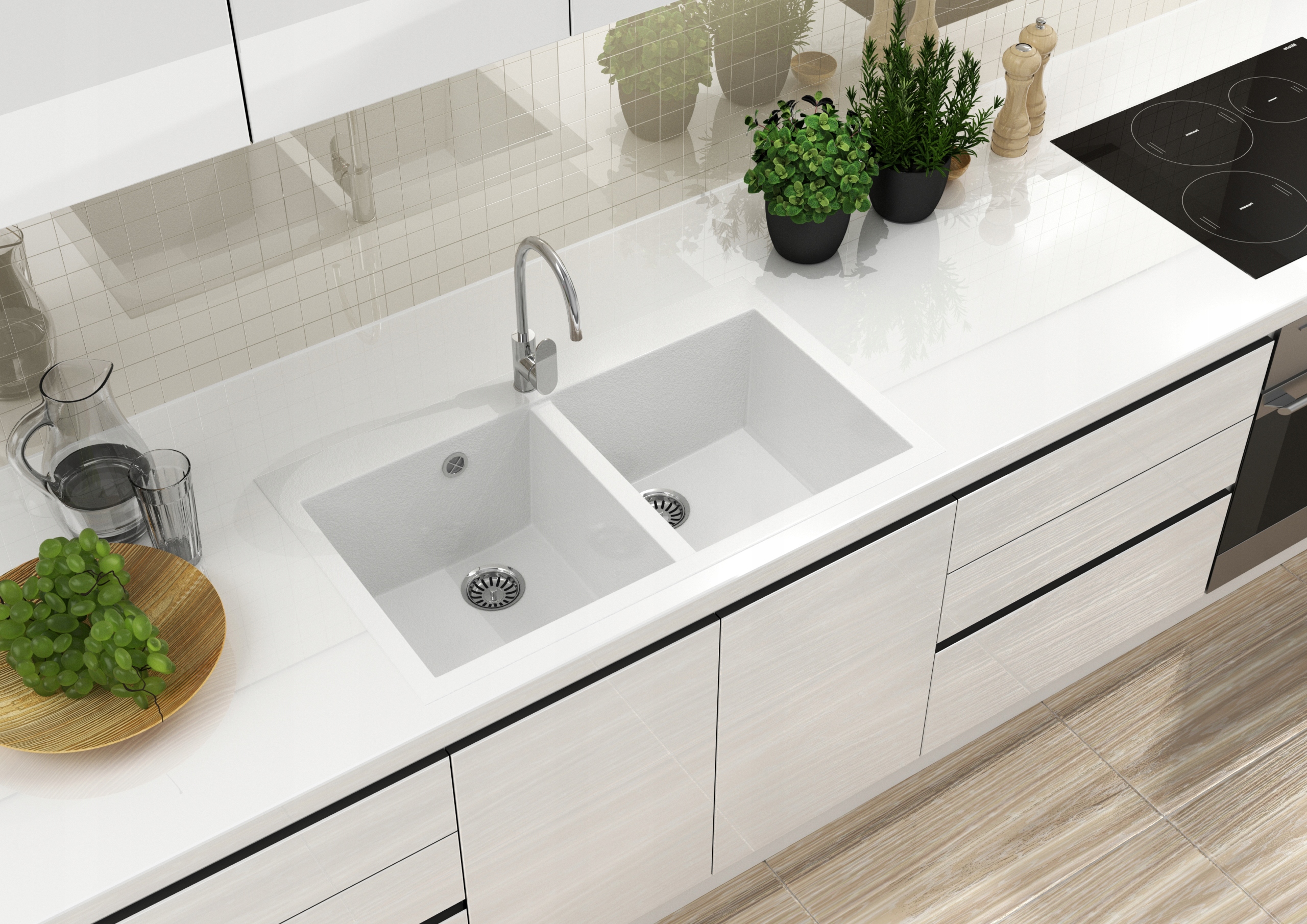 - Skład zlewozmywaków to 20% dedykowanej żywicy oraz 80% kruszywa granitowego