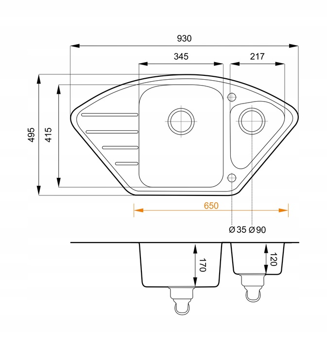 Zlewozmywak 1,5- komorowy narożny MERKURY