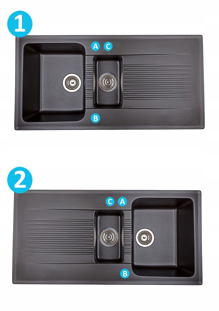 - Otwory w zlewozmywaku: 2 otwory w standardzie (góra i dół) Jeśli życzą sobie Państwo mniej lub więcej otworów, bardzo proszę o taką informację w wiadomości do sprzedającego, używając literek na zdjęciu poniżej oraz o informację, po której stronie ma się znajdować ociekacz