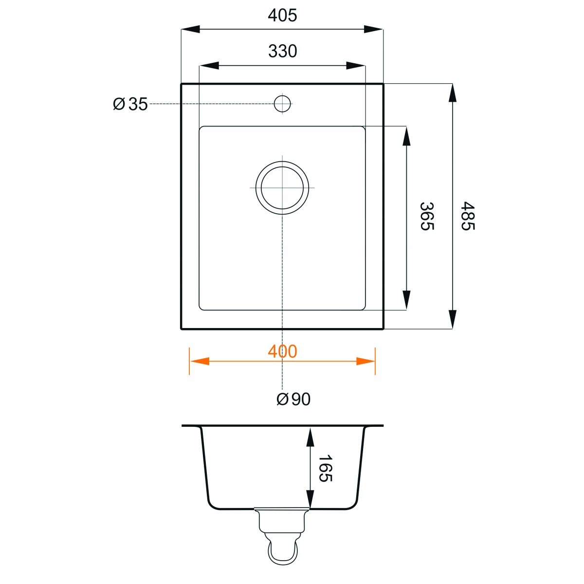 - Typ zlewu: 1-komorowy