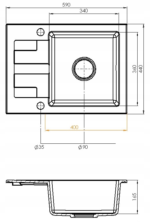 - Otwory w zlewozmywaku: 2 otwory w standardzie (góra i dół) Jeśli życzą sobie Państwo trzeci otwór, bardzo proszę o taką informację w wiadomości do sprzedającego uwzględniając stronę ociekacza.