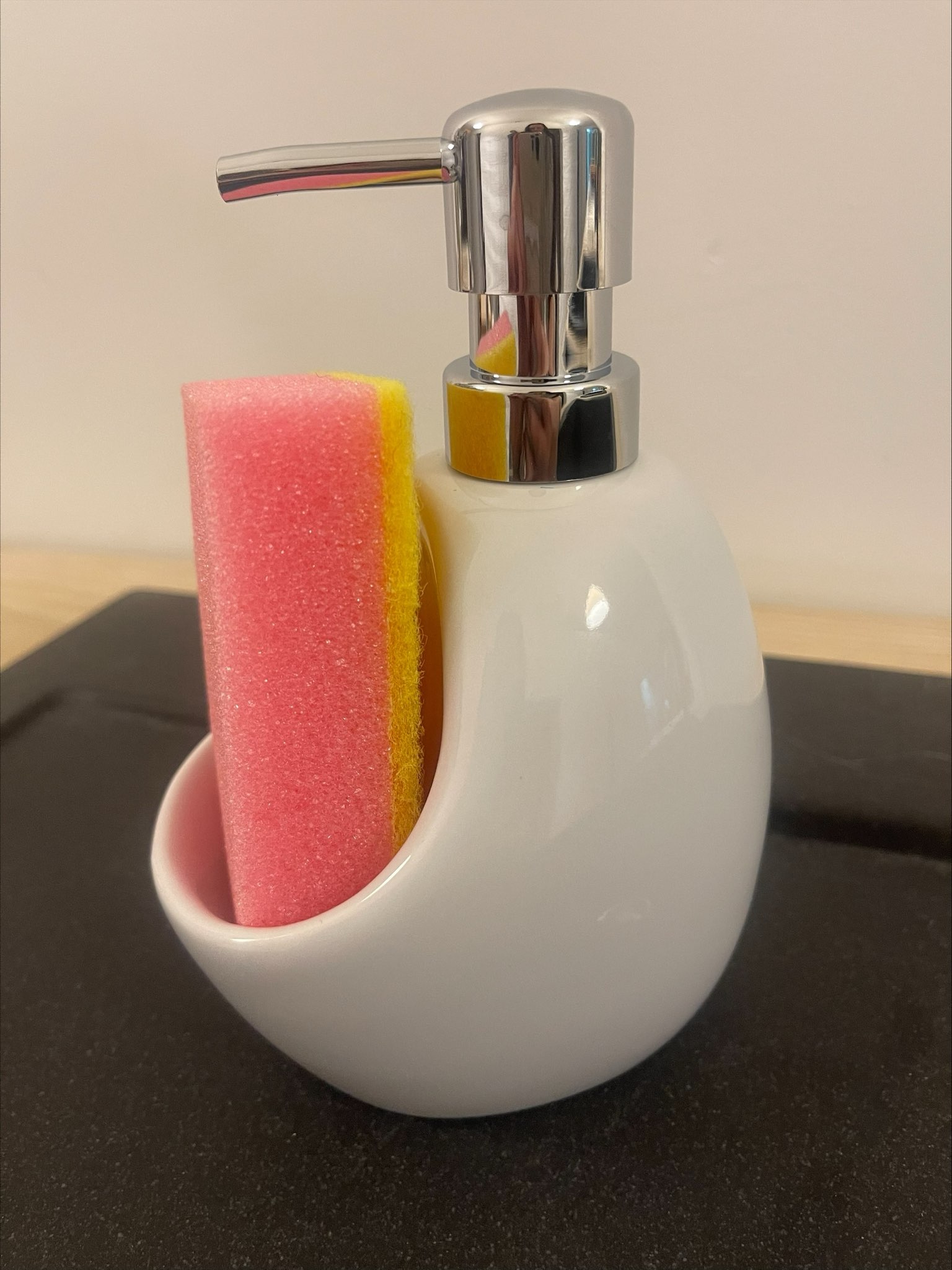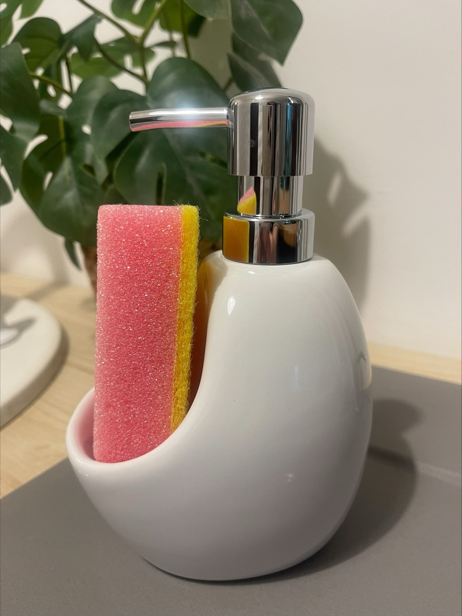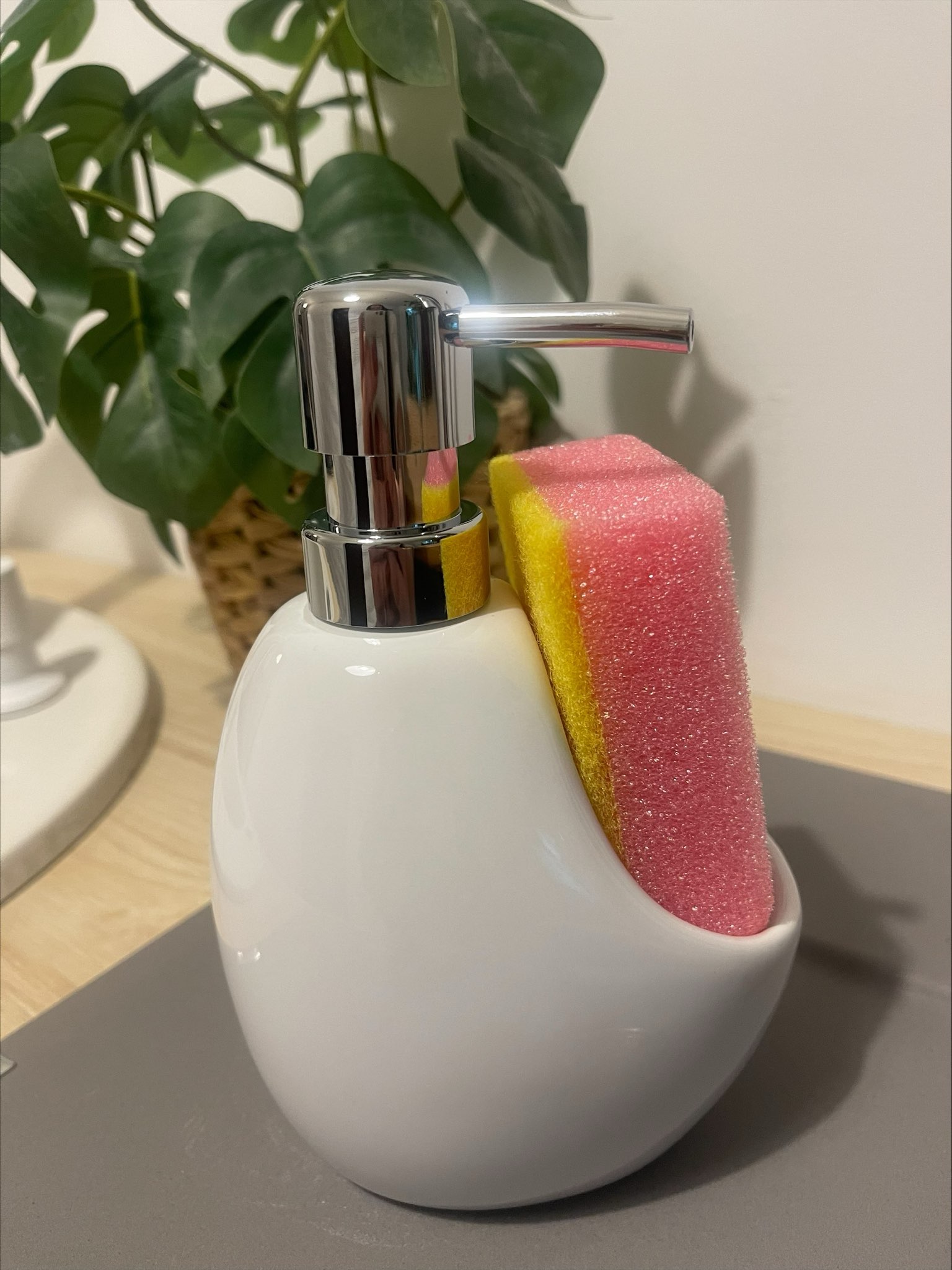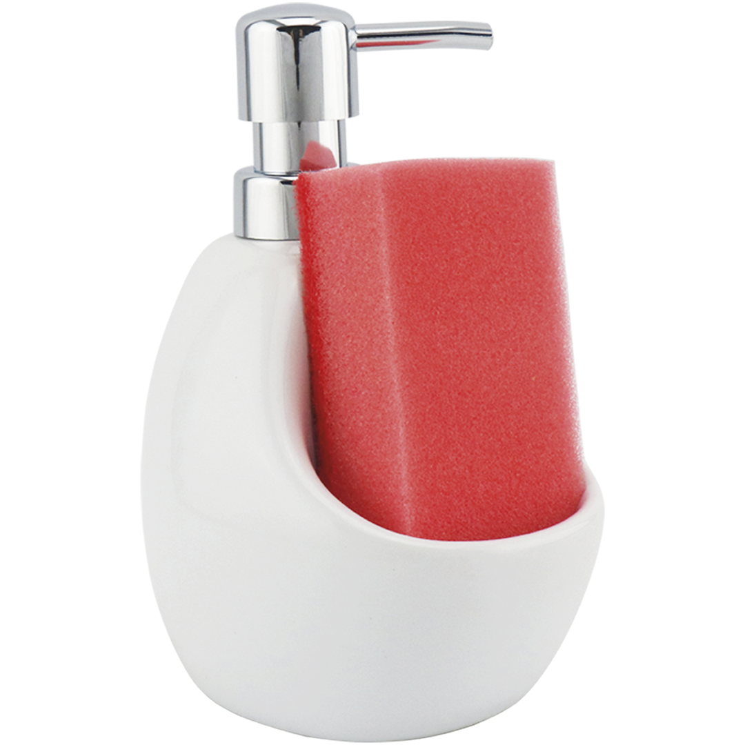 Dozownik kuchenny ceramiczny do płynu z gąbką BIAŁY