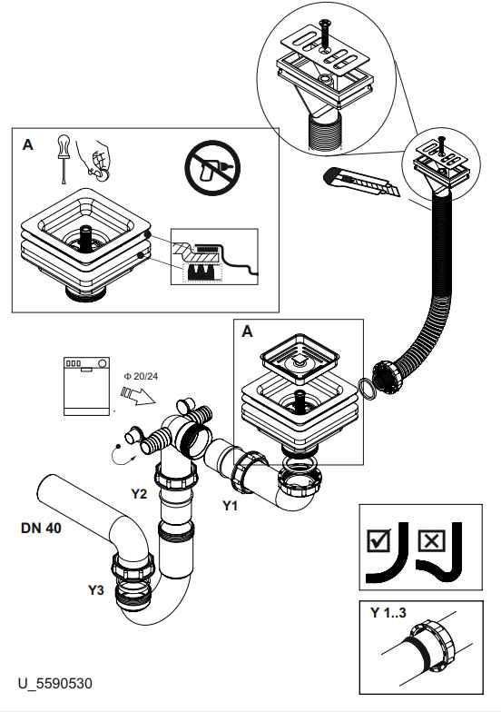 - pasuje do większości zlewozmywaków jednokomorowych granitowych i stalowych z przelewem prostokątnym i otworem odpływowym kwadratowym