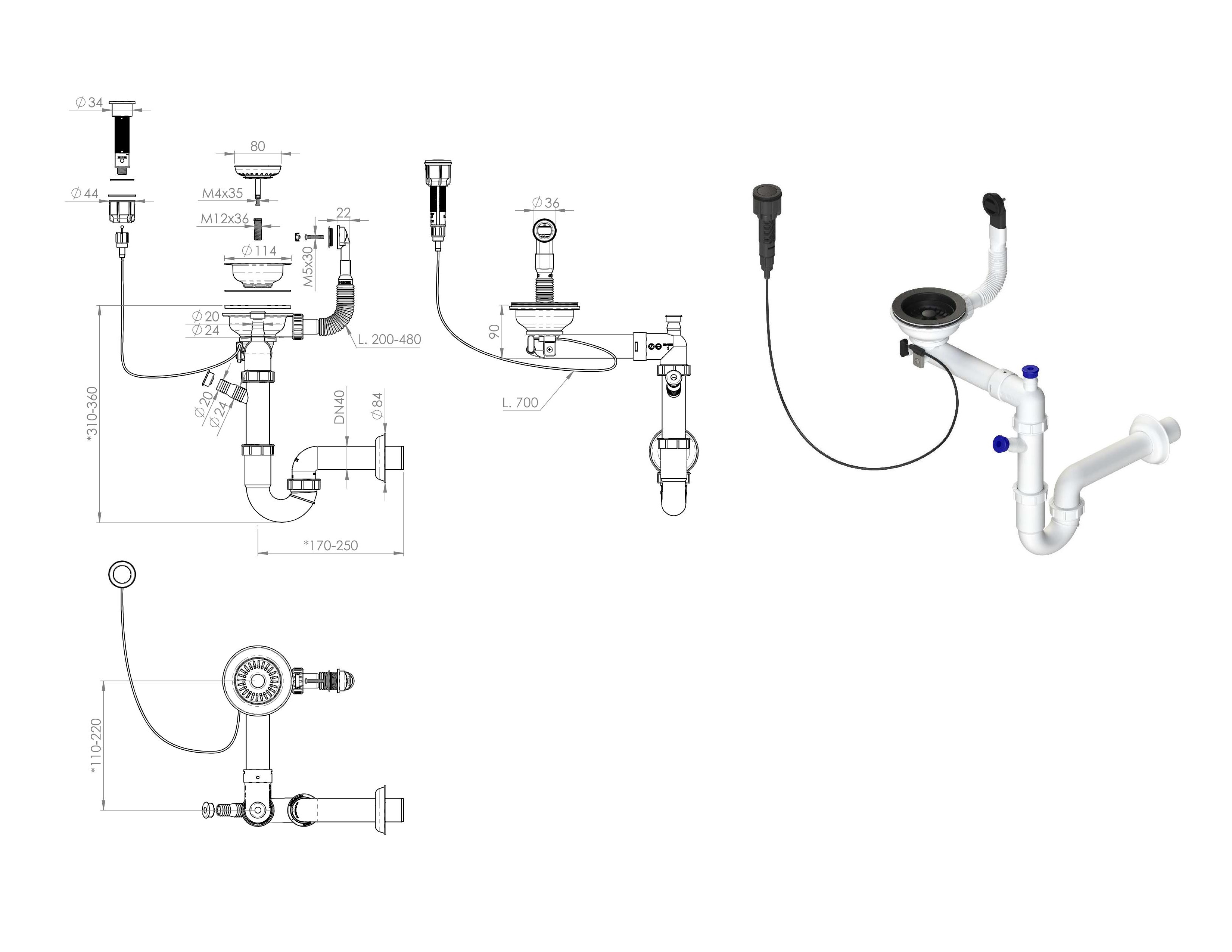- syfon z przelewem i korkiem automatycznym