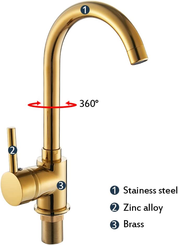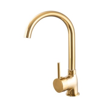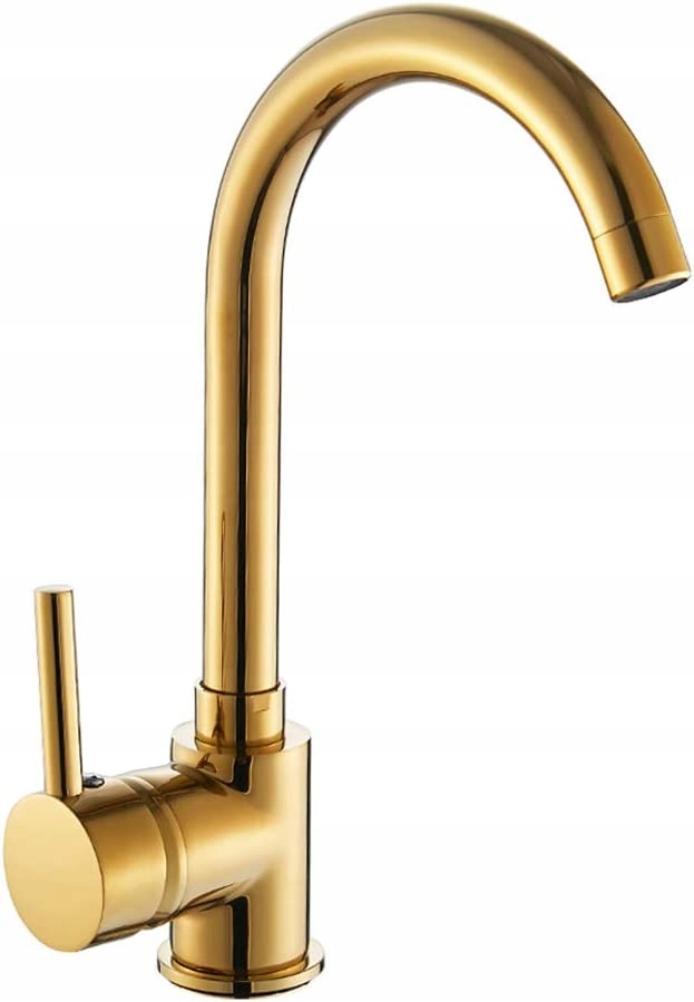 Nowoczesna i praktyczna bateria zlewozmywakowa ZŁOTA z wysoką obrotową wylewką.